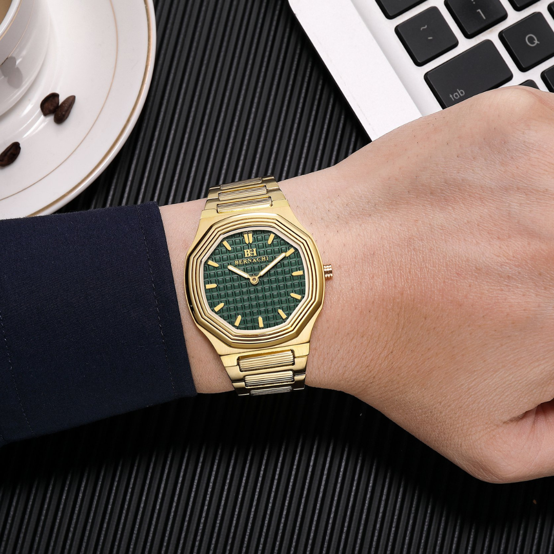 ساعة ماركة برناتشي BH294 رجالي ذهبي ميناء اخضر