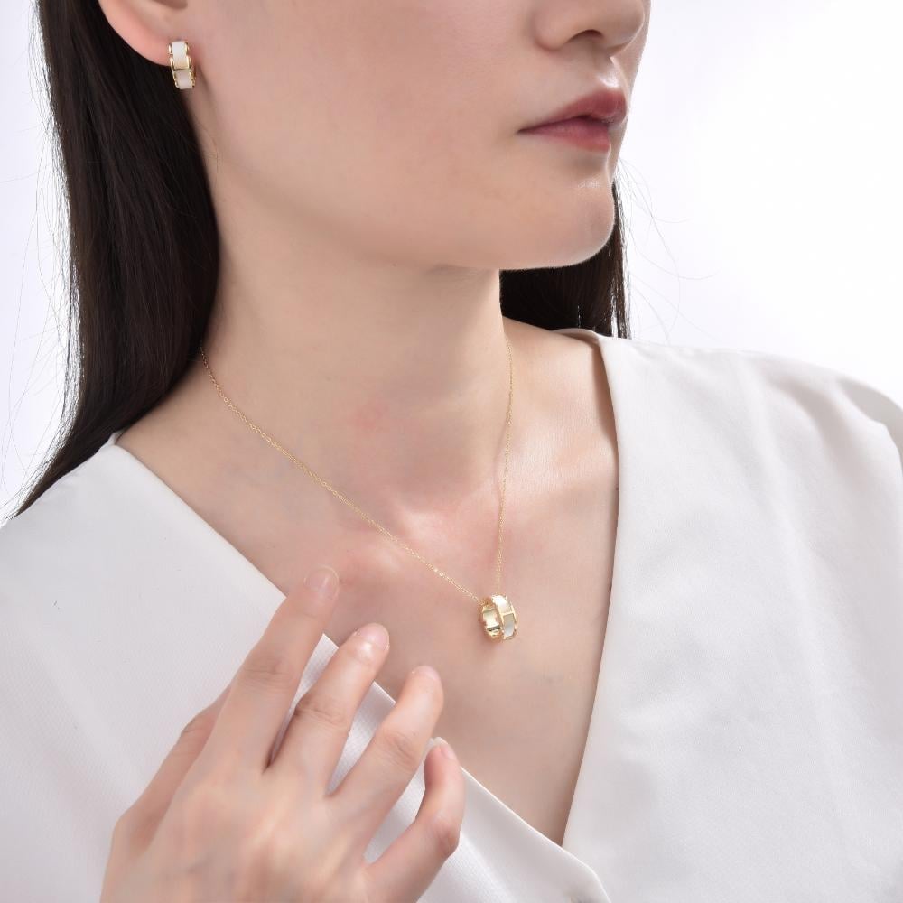 تألقي بفخامة استثنائية مع طقم إكسسوارات نسائي أنيق يتكوّن من حلق وسلسال مرصّعين بأحجار الزيركون اللامعة.