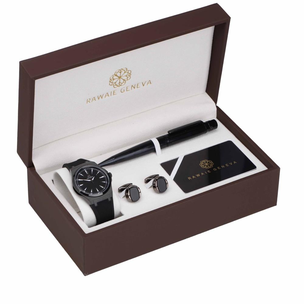 رقم الموديل random_sku_1754317524578_طقم رجالي فاخر: ساعة + قلم + كبك JX-3-3031 اسود كامل